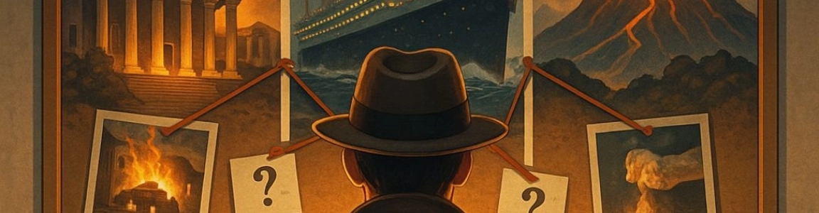 Trois grandes enquêtes vous attendent : 🔥 L'incendie de la bibliothèque d'Alexandrie 🚢 Le naufrage du Titanic 🌋 L'éruption du volcan Eyjafjöll