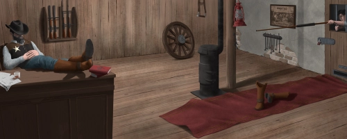 The secret: The Sherriff of Tombstone colludes with Jack Greed, who owns a lot of land around Tombstone. Jack bought a piece of land of a widow for a knock-down price. What the widow did not know: on this property is an entrance to a subterranean system, from where, in case of a climatic catastrophe, selected people are supposed to be brought to another planet. Jack is in possession of a map with the coordinates of the entrance. His deal with the Sheriff: He hides the map in the jail in tombstone, in return on day X he will be granted entrance to the other world.